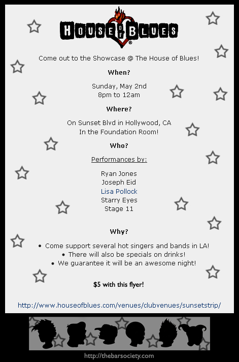 Come out to the Showcase @ The House of Blues! Come see several hot acoustic singers and bands in LA!